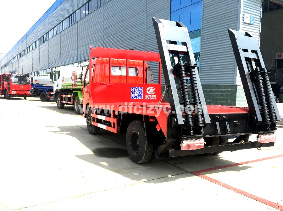 東風(fēng)福瑞卡平板運(yùn)輸車車架低,承載能力大,使用壽命長(zhǎng)。前輪可轉(zhuǎn)向,轉(zhuǎn)角達(dá)90°,在施工道路不平的情況下,能保持所有輪胎同時(shí)著地,保證車架和輪胎受力均衡合理,確保所載設(shè)備的安全。車輛裝有腳剎系統(tǒng)和手剎制動(dòng)。車輛尾部安裝專用機(jī)械式半自動(dòng)爬梯,履帶式工程設(shè)備可以自行上下平臺(tái)(無(wú)需其他任何起吊設(shè)備及輔助工具)直接與主車掛鉤連接。