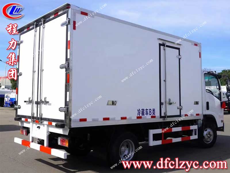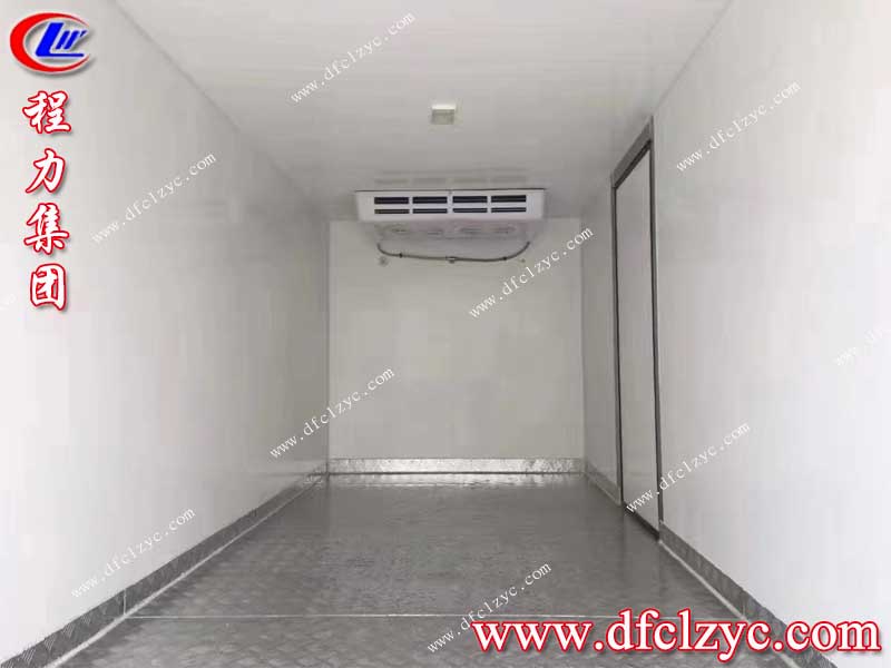程力集團(tuán)國六長安冷藏車上裝采用內(nèi)外玻璃鋼,中間保溫層,廂體厚度8cm,底板鋁花紋板,門鎖鉸鏈不銹鋼,