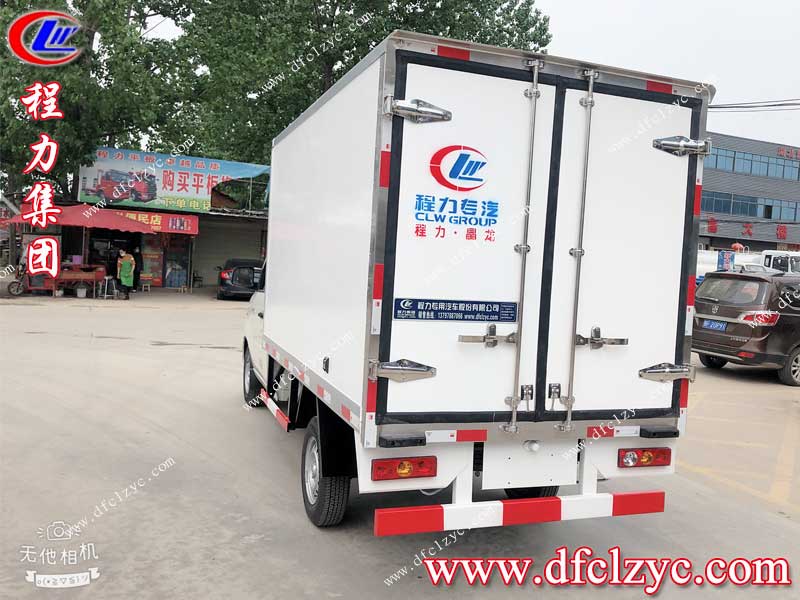 2019-12-24程力集團國六長安冷藏車上裝采用內(nèi)外玻璃鋼,中間保溫層,廂體厚度8cm,底板鋁花紋板,門鎖鉸鏈不銹鋼,