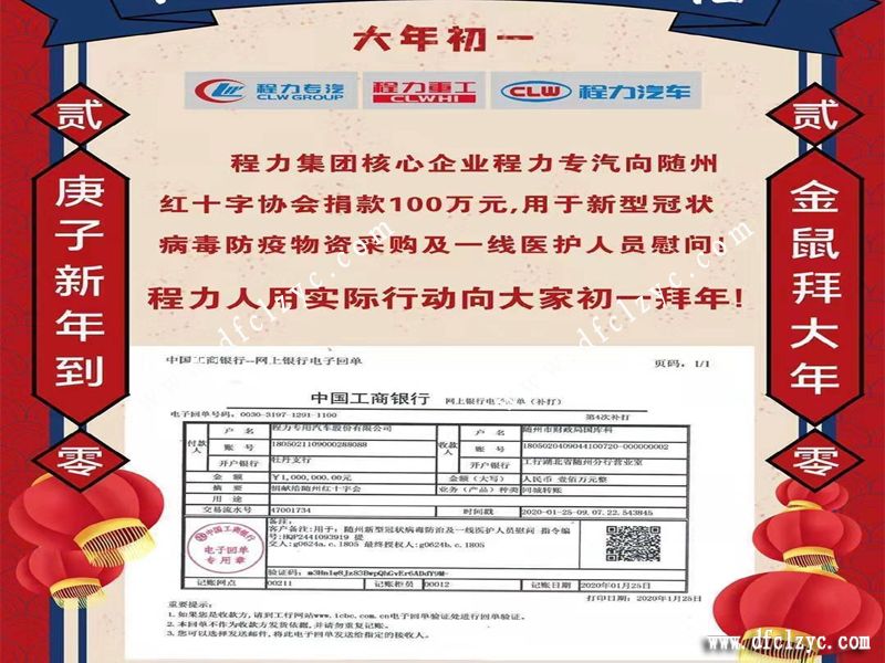 大年初一,程力汽車集團(tuán)董事長(zhǎng)程阿羅的一則微信刷爆隨州人的朋友圈,他說(shuō),這是所有程力人的心意,將專項(xiàng)用于隨州新型冠狀病毒感染肺炎防治物資保障和醫(yī)護(hù)人員慰問(wèn)!
