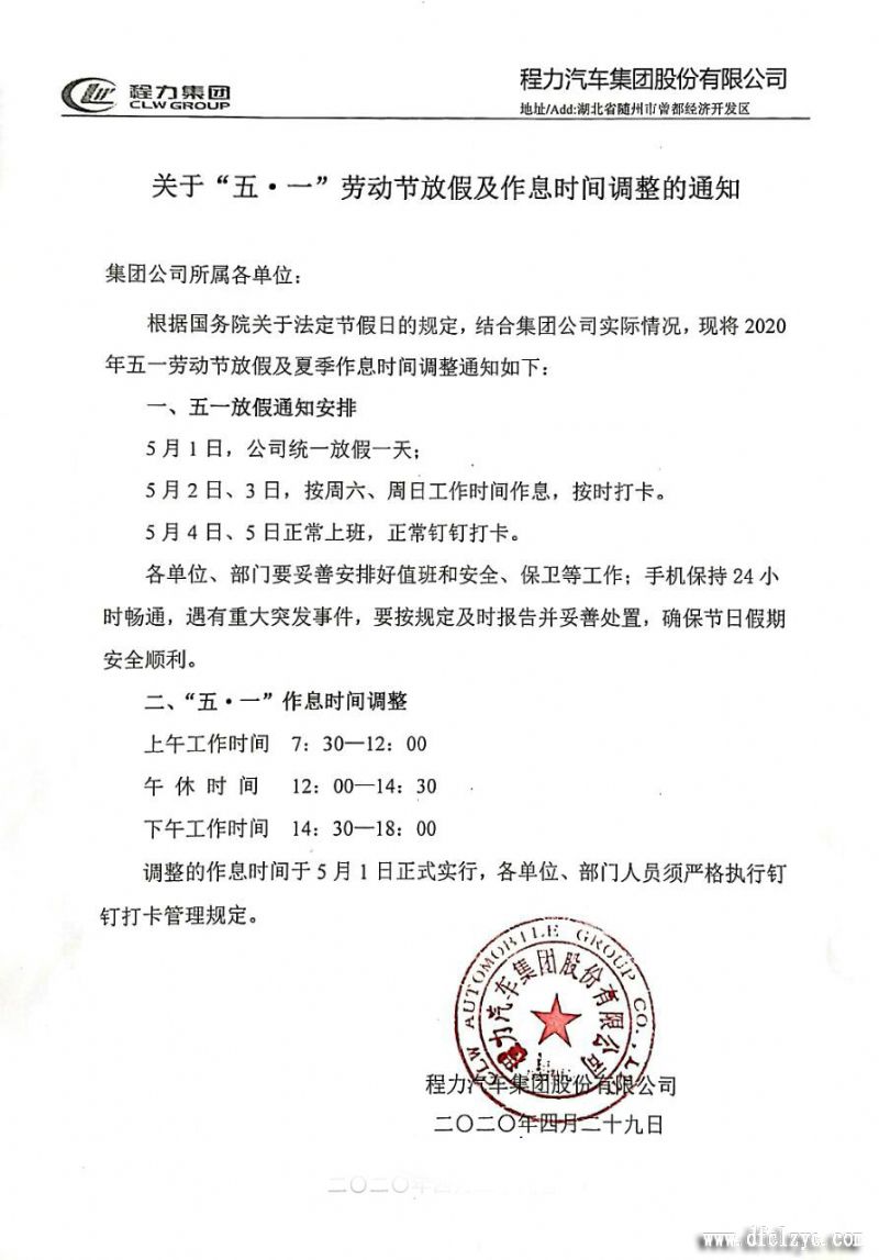 2020年程力集團(tuán)五一放假通知