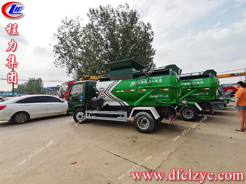 程力集團(tuán)5方餐廚垃圾車基本配置,采用東風(fēng)凱普特3308軸距,原裝正宗國五底盤,玉柴115發(fā)動(dòng)機(jī),雙層大梁,7.00鋼絲胎,新款駕駛室?guī)ХD(zhuǎn),車頭改成薄荷綠色,帶空調(diào)、ABS、方向助力、氣剎制動(dòng);上圖為程力東風(fēng)凱普特餐廚垃圾車試水現(xiàn)場(chǎng)