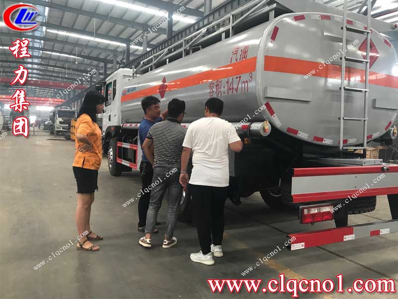 郭總需要一輛罐體車,用來裝做紙用的膠水,然后聯(lián)系到湖北程力集團銷售一部的梁經(jīng)理,要求用解放悍V底盤,前四后六,根據(jù)客戶的需要梁經(jīng)理跟郭總推薦了解放前四后八普通液體運輸車,罐體容積28方,可做分倉,兩倉可互通可單獨作業(yè),帶有碳鋼油泵,根據(jù)郭總要求,罐體后留一個自流口。