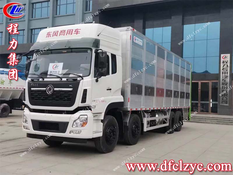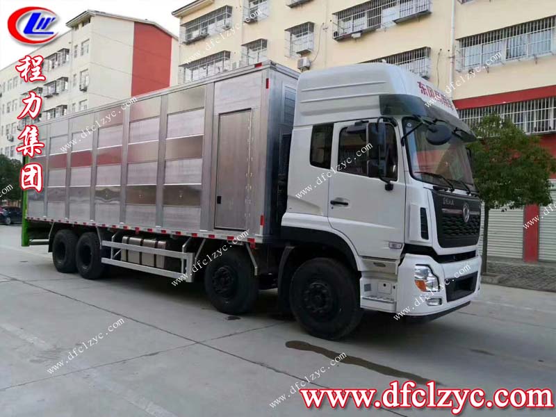 程力集團的東風天龍鋁合金恒溫運豬車的配置參數(shù):外形長度:12000x2550x3980,貨箱尺寸:9100x2400x2540,總質(zhì)量為31000kg;由車載制冷機,暖風機,氣體混合輸送倉,箱體排風扇等組成,實現(xiàn)仔豬生存空間氣體的通和恒溫。